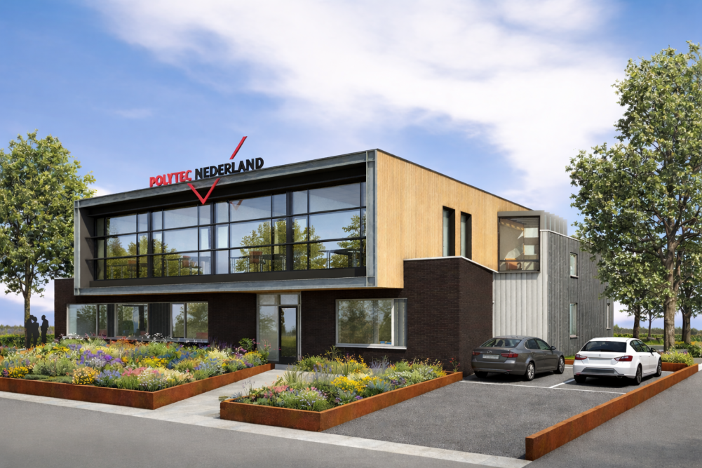 Het bestaande kantoor van Polytec ondergaat een metamorfose. Het huidige kantoor zal worden uitgebreid met een extra verdieping, maar ook het bestaande gebouw zal worden meegenomen in de totale face-lift. Door rekening te houden met de bestaande vormgeving, ontstaat er in de verbouwde situatie een evenwichtig geheel, waar men weer jaren mee vooruit kan.